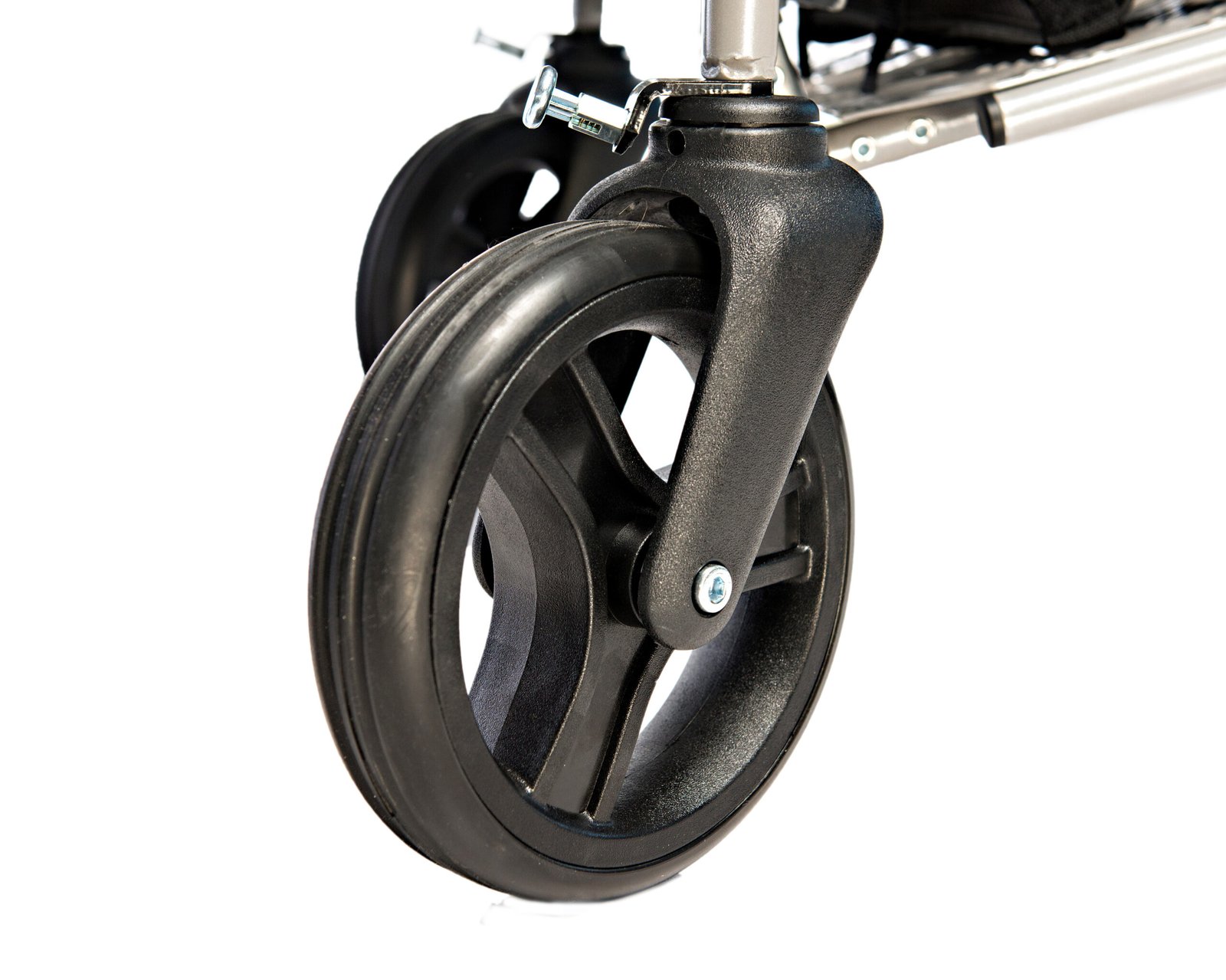 Saugaus keliavimo galimybė ir patogi sėdėjimo poza yra svarbi vaiko raidai. Šis įrenginys turi teisingą vaiko padėtį užtikrinančią ir laikysenos defektus taisančią sėdynę su minkšta pagalvėle bei lengvai padėtį keičiantį atlošą. Todėl vežimėlis puikiai pritaikomas pagal individualius paciento poreikius. Dėl tvirtos konstrukcijos ir patogios sulankstymo funkcijos priemonę paprasta gabenti, ji užima mažai vietos namuose. Palydovo valdomas vežimėlis vaikui RACER EVO yra stabilus, kokybiški, reguliuojami saugos diržai ir paminkštintos priemonės dalys užtikrina naudotojo saugumą. Dėl 360° apie savo ašį besisukančių monolitinių priekinių ratukų su krypties fiksatoriais (blokavimo galimybe) įrenginys yra ypač manevringas, mažiau juntami paviršiaus nelygumai važiuojant. Šviesą atspindintys elementai ant apmušalų daro vežimėlį gerai matomą kelyje.