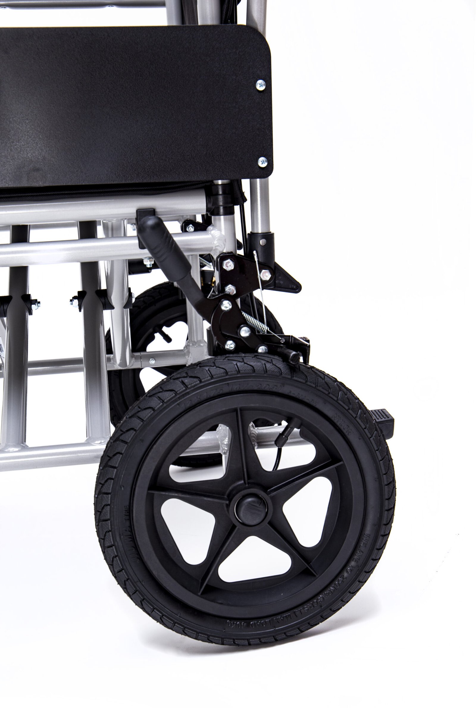 Apvaliame lipduke ant porankio bei ant metalinės kryžmės, esančios po vežimėlio sėdyne, įrašytas skaičius (pvz. 46) nurodo, kad vežimėlio sėdynės plotis yra 46 cm. Vežimėlio atlošas ir sėdynė – nailoniniai, paminkštinti, nuimami, skalbiami skalbimo mašinoje. Atlošo aukštis – 45 cm, sėdynės gylis – 41 cm. Nuimami, pasukami į šonus, reguliuojamo aukščio ( 34 – 45 cm) pakojai su nuimamu kulnų palaikymo dirželiu. Priekiniai ratai – iš minkštos medžiagos, monolitiniai (nepripučiami), 19×5 cm, galiniai – pripučiami, 31 cm. Siekdami užtikrinti saugumą periodiškai tikrinkite oro slėgį galinėse padangose. Komplektacijoje – 4 cm pasėstas, pompa, reguliavimo įrankių rinkinys, naudojimo instrukcija lietuvių kalba.