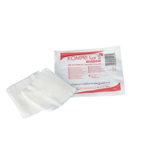 Kompri lux s sterilūs marlės tamponai be rentgeno siūlo, 17 dygsnių, 8 sluoksnių, 5 cm x 5 cm x 5 vnt.