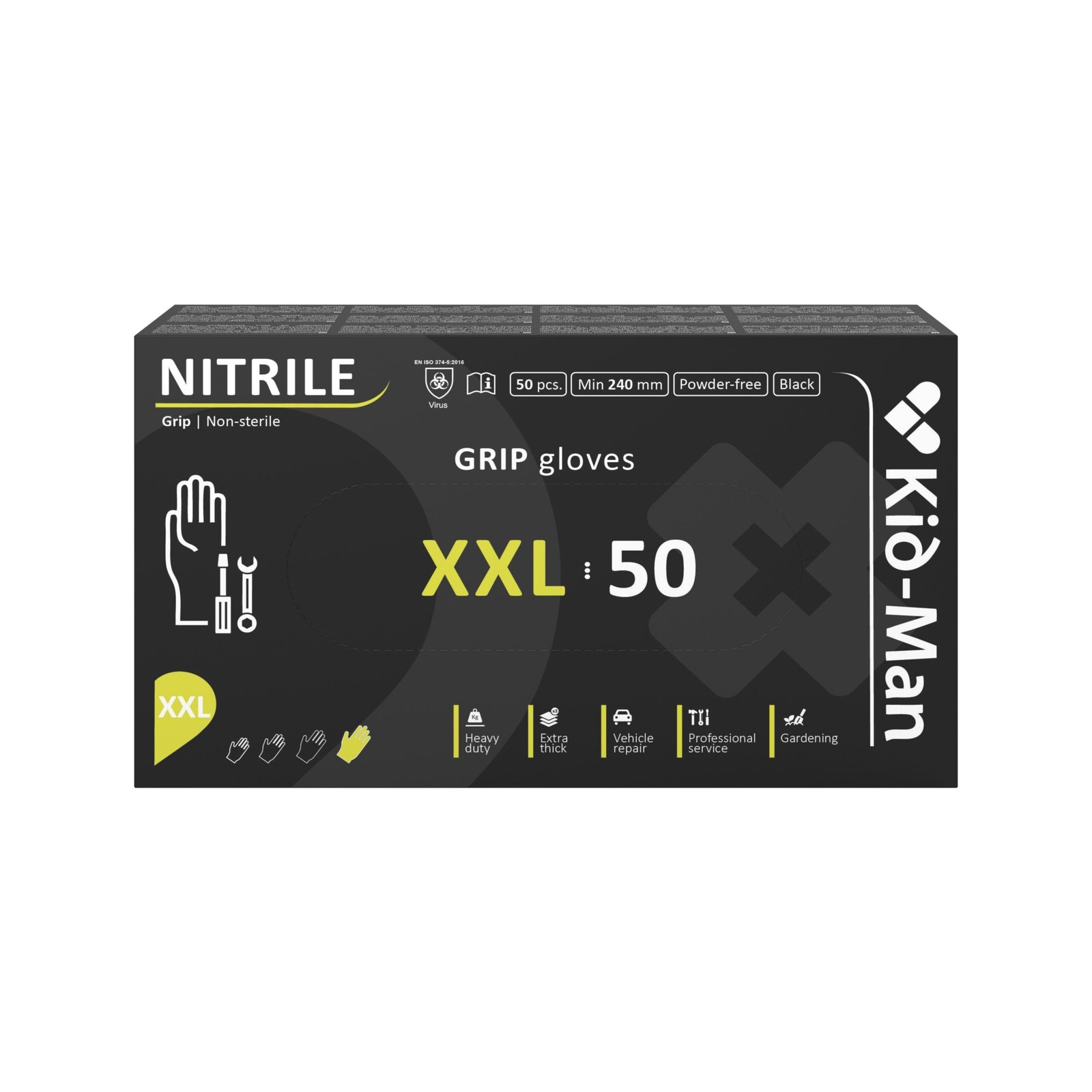 Kid-man black grip nitrilinės pirštinės n50, dydis xxl