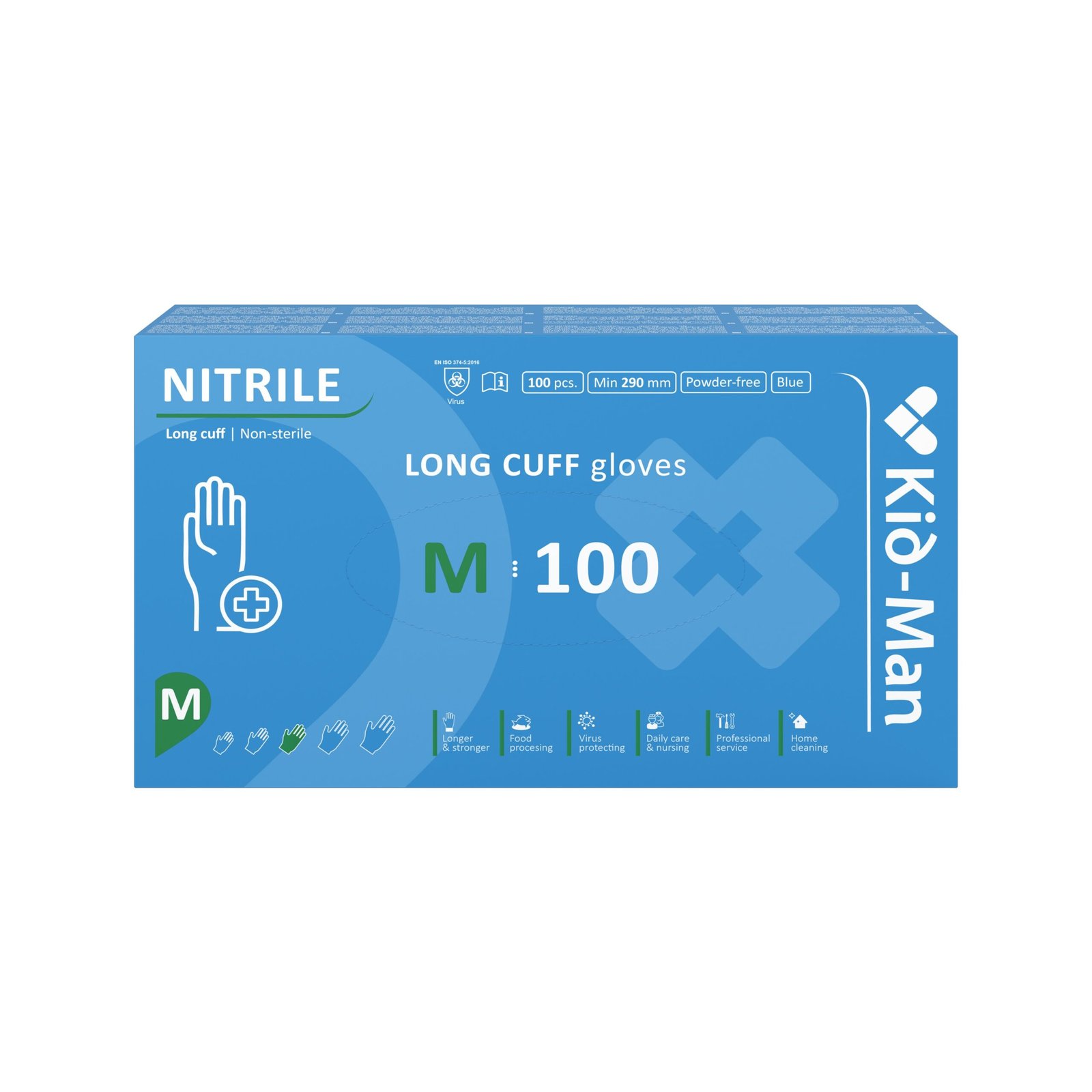 Kid-man long nitrilinės pirštinės n100, dydis m